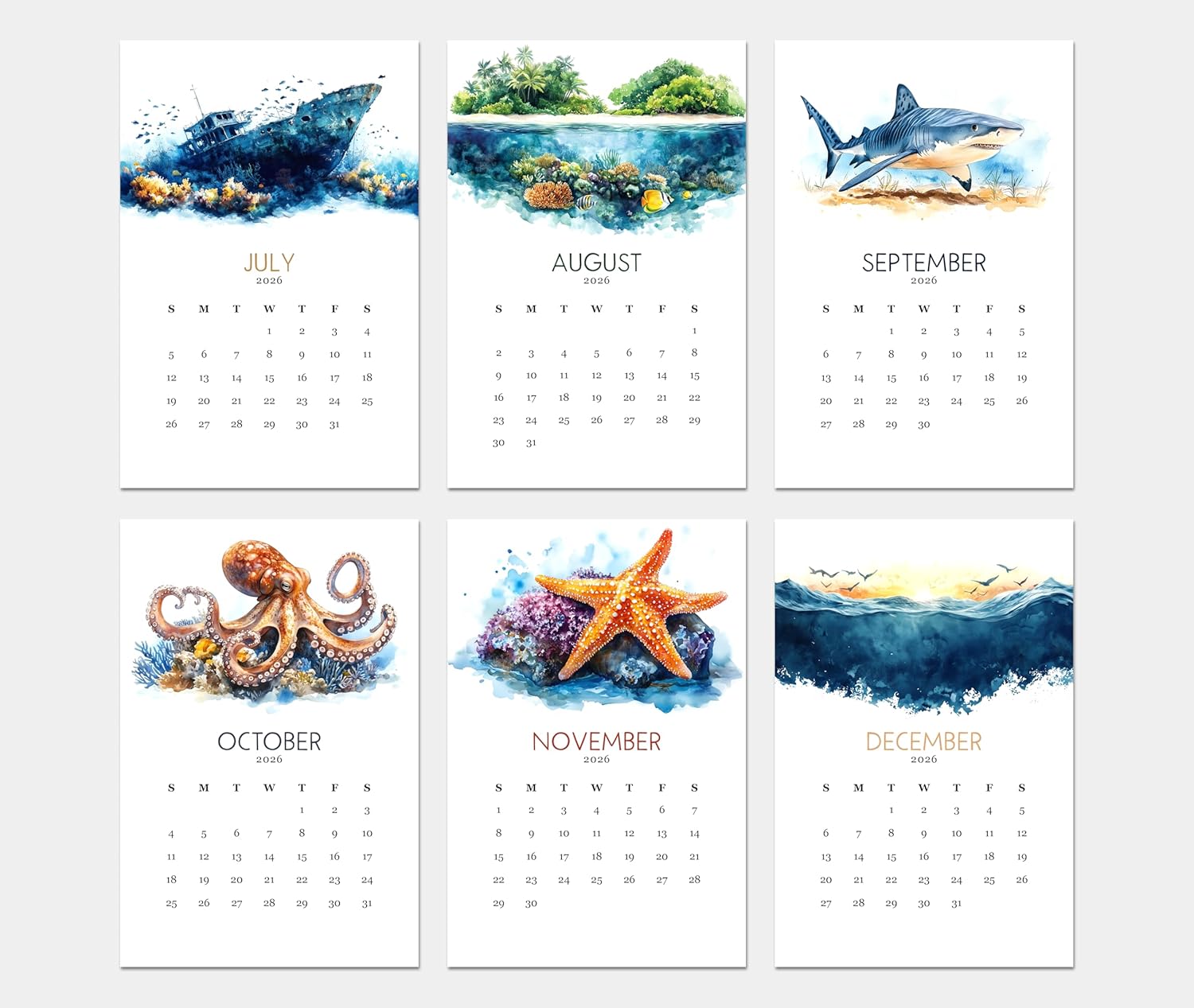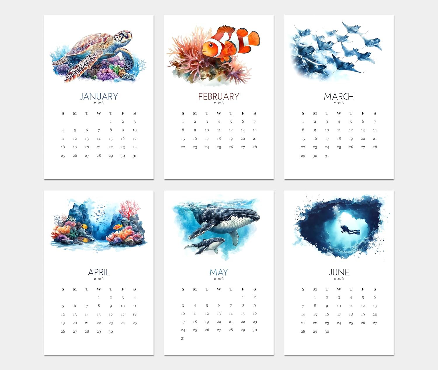 Modern & Minimalist Design – Ocean Life – Scuba Diving – Clean, easy-to-read layout for effortless planning.